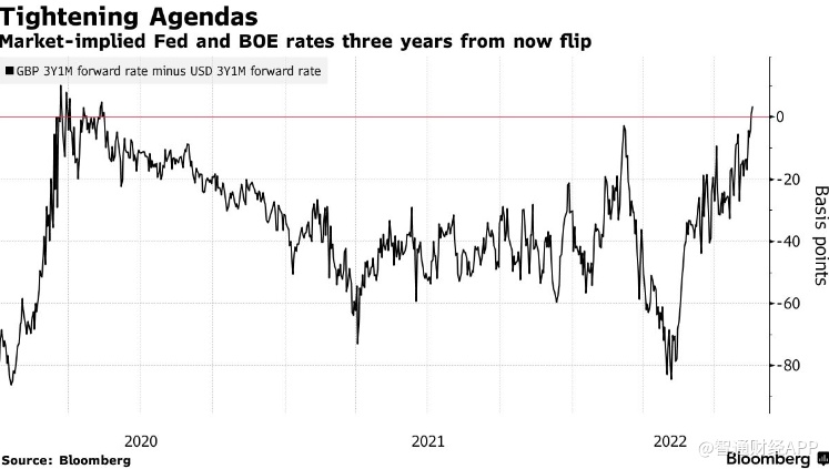 火热的通胀也推高了市场对英国利率的预期,英国3年远期利率自2020年初疫情爆发以来首次高于美国同期利率。
