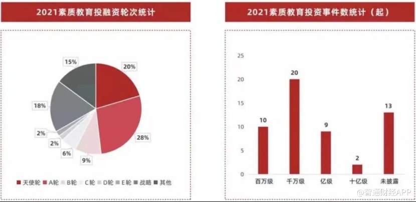 智通财经APP了解到,2021年素质教育赛道投融资事件达54起,占比40.6%,金额超过30亿元,融资主要赛道集中在STEAM、艺术、体育,成为引领教育行业投融资的新动力。