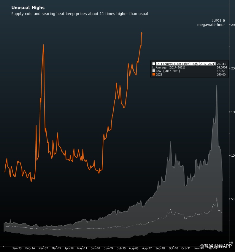 对欧洲来说,这是一个不同寻常且艰难的夏天。在温暖的月份,天然气价格和需求通常会放缓,这使得欧洲国家能够将天然气储存起来,为冬天做准备。但来自俄罗斯的天然气供应减少,以及高温天气使天然气价格比往年同期高出约11倍。