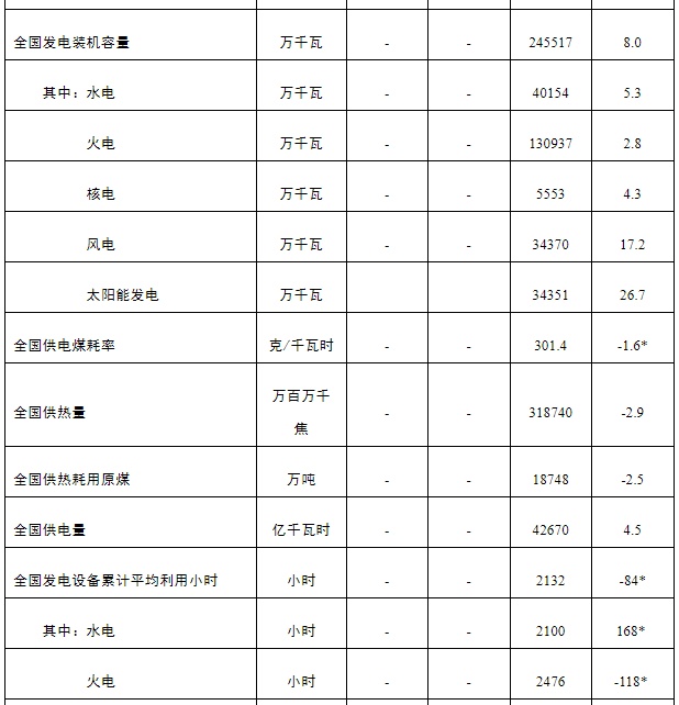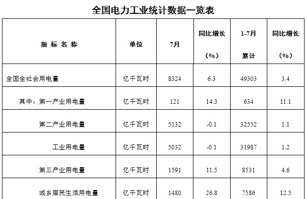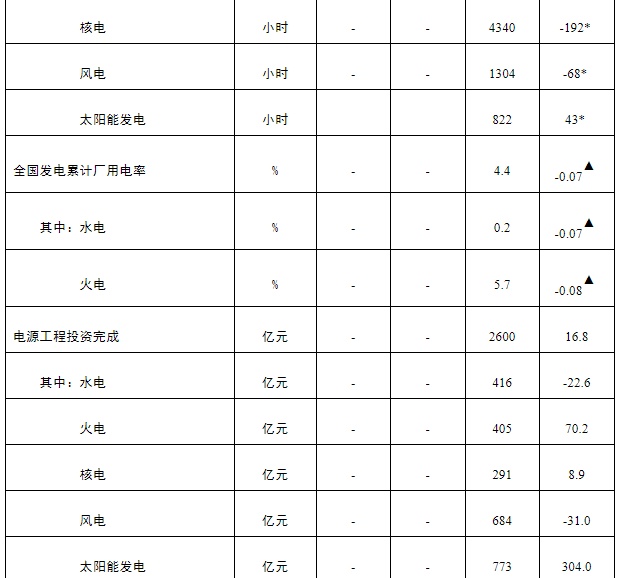 1-7月份,全国发电设备累计平均利用2132小时,比上年同期减少84小时。其中,火电2476小时,比上年同期减少118小时;核电4340小时,比上年同期减少192小时;风电1304小时,比上年同期减少68小时。