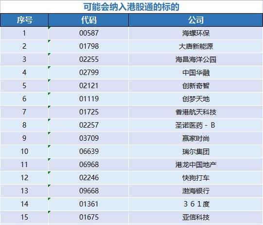 智通财经APP根据恒指公司公布的综合指数变动及港股通指数变动情况,并结合各券商机构预测,梳理出最有可能新加入港股通标的合计16只,供投资者参考,准确的港股通变动名单请以港交所、上交所、深交所官方公布为准。