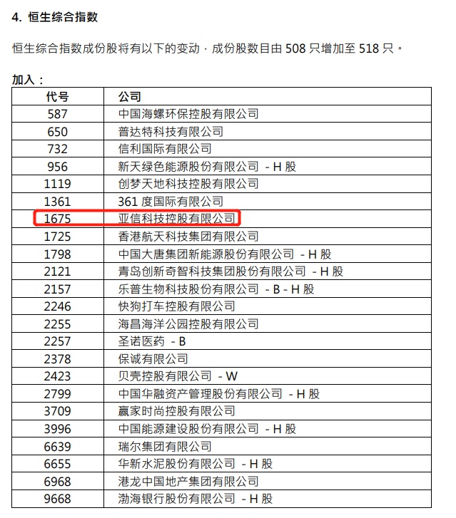 智通财经APP获悉,8月19日,恒生指数公司宣布截至2022年6月30日的恒生指数系列季度检讨结果,所有变动将于2022年9月5日(星期一)起生效。其中,亚信科技(01675)被纳入恒生综合指数成份股。