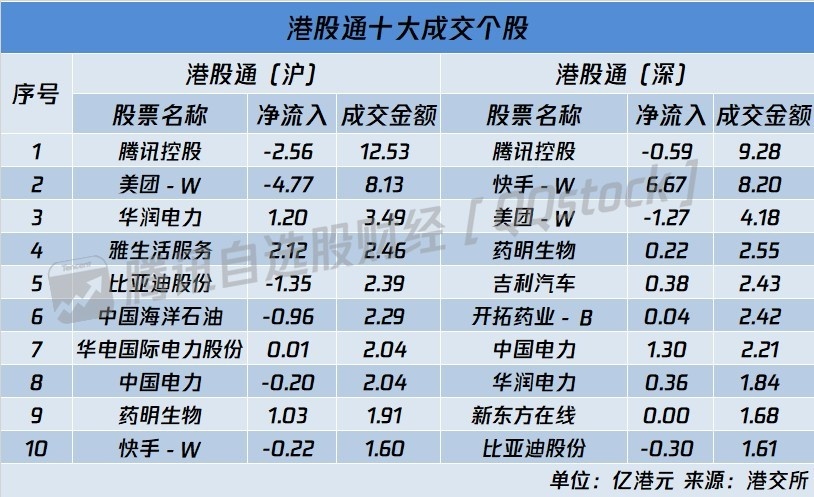 南向资金上周五净流入10.32亿港元。港股通(沪)方面,雅生活服务、华润电力净买入居前,分别获净买入2.12亿港元、1.20亿港元。港股通(深)方面,快手-W、中国电力净买入居前,分别获净买入6.67亿港元、1.30亿港元。