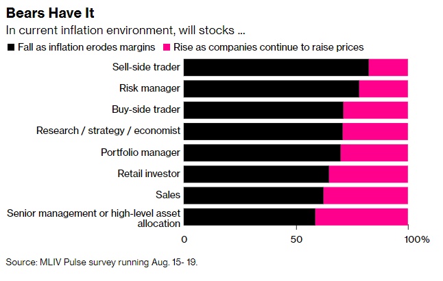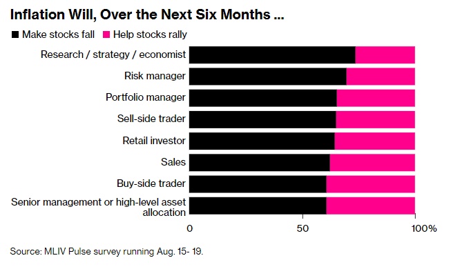 这一切预期数据的重要性不言而喻。对全球各地的基金经理来说,货币政策的快速收紧及其带来的经济影响是最大风险,而利率是企业估值水平的一个关键驱动因素。受访者普遍表示,还有一大坏消息是,通胀率将对企业利润率造成重大打击,进而加速推低股市。