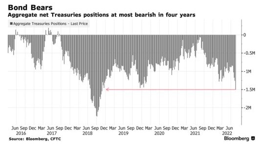 市场上的头寸也反映了这一点。根据美国商品期货交易委员会(CFTC)的数据,对所有期限美国国债的净空头非商业头寸的综合指数显示,看跌押注已增至2018年以来的最高水平。