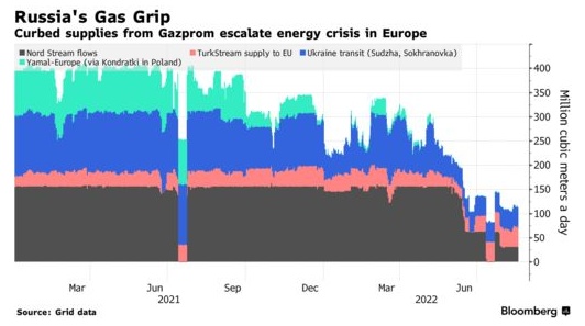 早前,俄罗斯方面表示,“北溪-1”天然气管道将于8月31日起停止供气3天,进行一次技术维护。虽然俄罗斯天然气工业股份公司强调,一旦检修工作完成,并且装置没有技术故障,天然气运输将恢复到每天3300万立方米(管道满负荷的20%),但这仍然引发了人们对维护结束后这条管道无法按计划恢复服务的担忧。数周来,欧洲一直对通过该管道的天然气运输感到不安,直至上个月该管道因维护关闭后,以20%的供气量水平恢复运输,担忧才有所缓解。