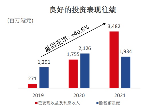 智通财经APP认为,尽管受到资产价格波动的影响,但公开市场的正面回报率仍然反映出公司投资管理业务的“硬核”一面。此外,未来投资管理业务的业绩表现,还取决于两个核心因素:其一,全球金融市场的波动,比如通胀和利率抬升影响资产定价;二投资收益率,主要取决于负责投资管理团队对经济和市场趋势的把握以及对投资组合的调整和保护。新鸿基公司的投资管理业务往绩表现良好,自2019年至2021年过去三个财政年度,该业务分项的累计收益及利息收益总额为71.18亿元,其中55.07亿元已变现,该分项三年总回报为40.6%,投资收益率较为理想,侧面证明了其投资管理团队具备跑赢市场的投资水平。