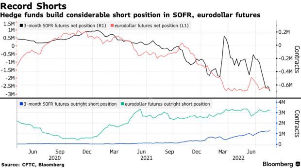 对冲基金在期货市场上做空了大量头寸,这些头寸参照的是伦敦银行间同业拆借利率(libor)的官方替代利率,即有担保的隔夜融资利率(Secured隔夜融资利率)。如果美联储主席鲍威尔在本周于杰克逊霍尔全球央行年会上有效地排除了转向鸽派的可能性,那么这种押注将会受益。