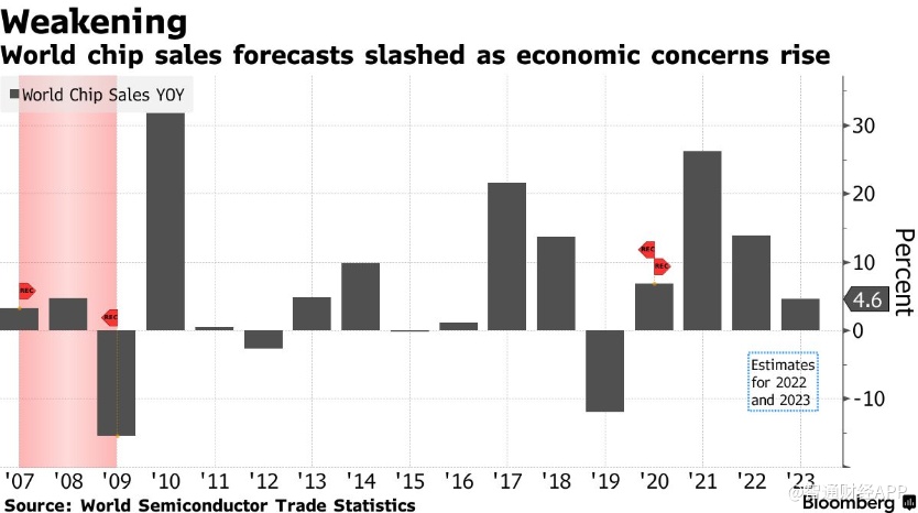 智通财经APP获悉,在激进加息和地缘政治风险上升的重压之下,市场对全球经济衰退的担忧加剧,芯片销售的降温幅度将超过此前的预期。
