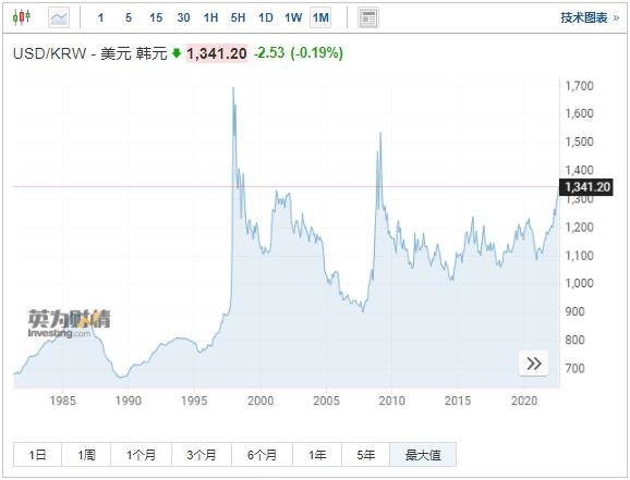 尽管这一消息帮助韩元收复了部分失地,但随后,韩元再度下跌,截至发稿,美元兑韩元汇率跌0.19%,报1341.20。