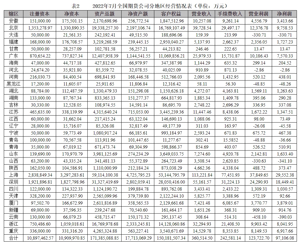 智通财经APP获悉,8月24日,据中期协数据显示,截至2022年7月末,全国共有150家期货公司,分布在31个辖区。2022年7月交易额50.81万亿元,环比增加6.24%,同比增加2.38%;交易量6.85亿手,环比增加19.94%,同比增加15.98%;营业收入36.05亿元,环比减少18.61%,同比减少10.68%;净利润9.71亿元,环比减少39.01%,同比减少14.20%。