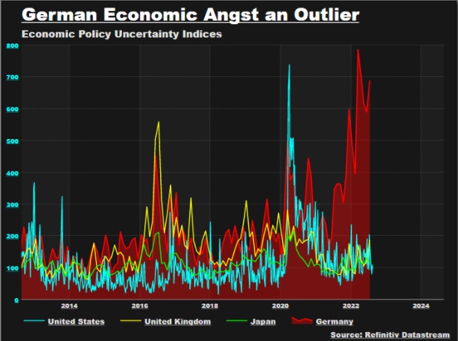 而随着天然气的市场价格相比上年涨逾六倍多(部分原因可能是为了避免冬季实施能源配给而疯狂提前储存天然气),外汇市场正再次反思欧洲地区经济的相对增长和通胀冲击。