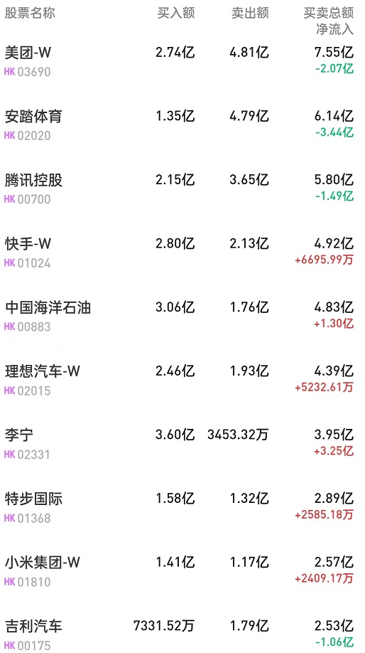 李宁(02331)获净买入3.25亿港元。消息面上,瑞银近日表示,市场近期忧虑体育用品行业的库存及折扣问题,预计国际品牌积极提供折扣的情况可于9月持续改善,令本土品牌的库存压力逐步舒缓,并于今年底恢复至正常水平。中信证券发研报称,建议重点关注品牌势能持续向上、长期仍有开店和提价空间且估值具备吸引力的国产品牌以及经营边际改善的零售和代工龙头,重点推荐李宁等。