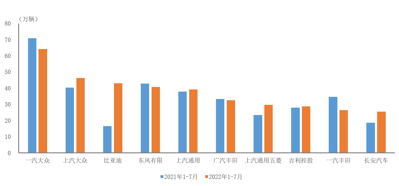 智通财经APP获悉,8月25日,据中国汽车工业协会统计分析,2022年1-7月,销量排名前十位的轿车生产企业共销售376.1万辆,占轿车销售总量的63.1%。