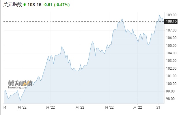 数据显示,截至发稿,衡量美元兑六种主要货币的一篮子美元指数下跌0.47%,报108.16,但仍离7月中旬触及的自2002年9月以来的最高点109.29不远。