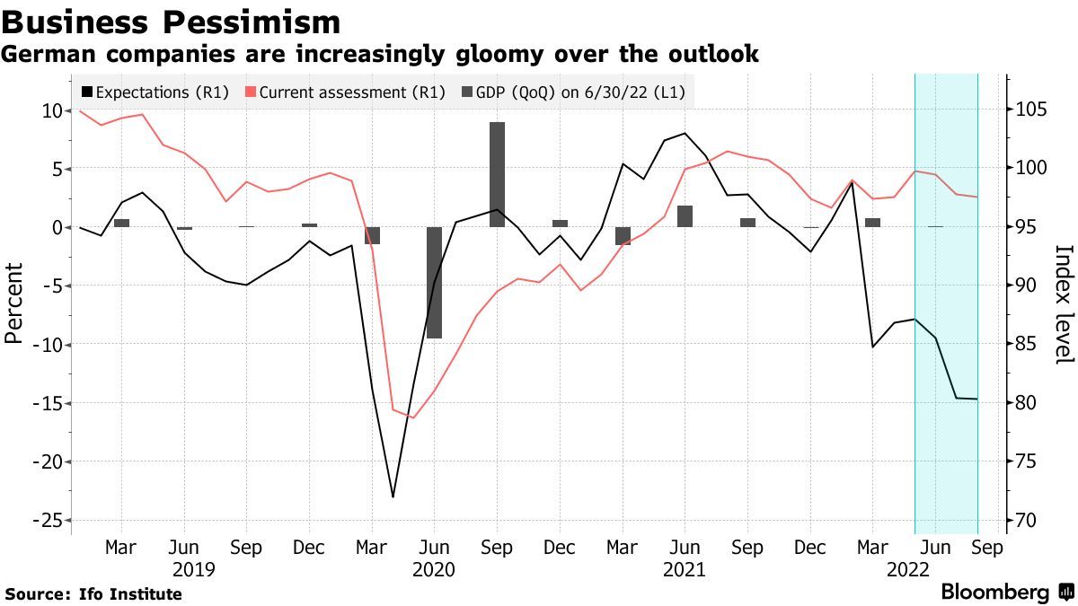 智通财经APP获悉,随着通胀飙升以及市场对欧洲最大经济体可能陷入衰退的担忧加剧,德国商业信心再度恶化。数据显示,Ifo研究所统计的衡量未来六个月商业预期的指标从7月的80.4小幅降至80.3,已连续第三个月下滑。尽管经济学家此前预计该指标降幅会更大,但实际数据仍然显示德国的商业信心较为消极。
