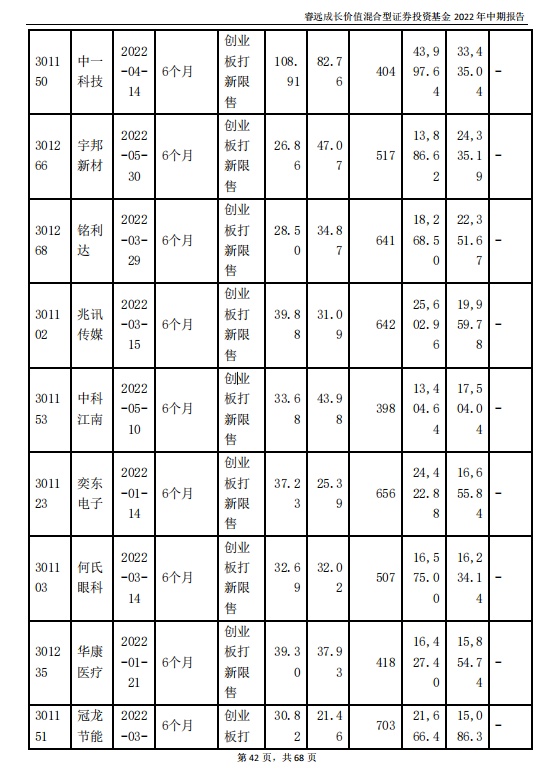 中报显示,截至二季度末,睿远成长价值混合A/C基金份额净值分别为1.7810元、1.7579元,上半年,该类A/C基金份额净值增长率为-15.94%、-16.10%,同期业绩比较基准收益率为-6.44%。