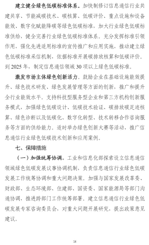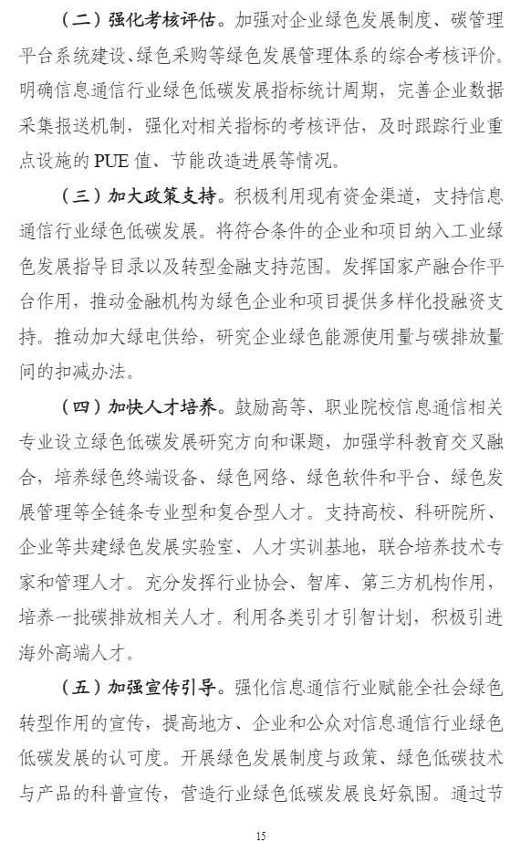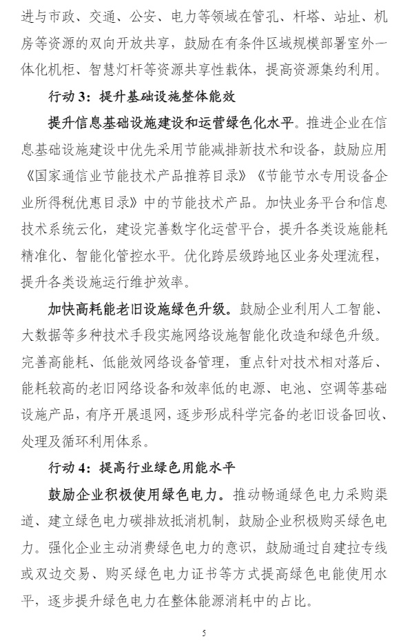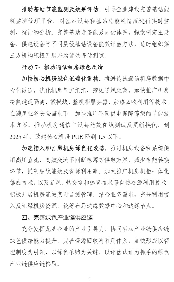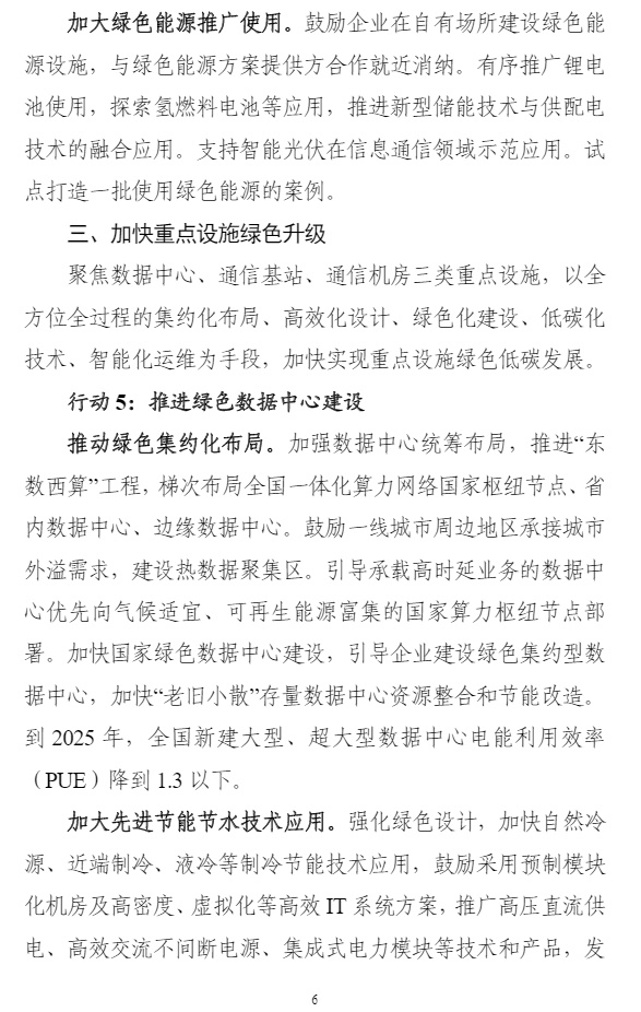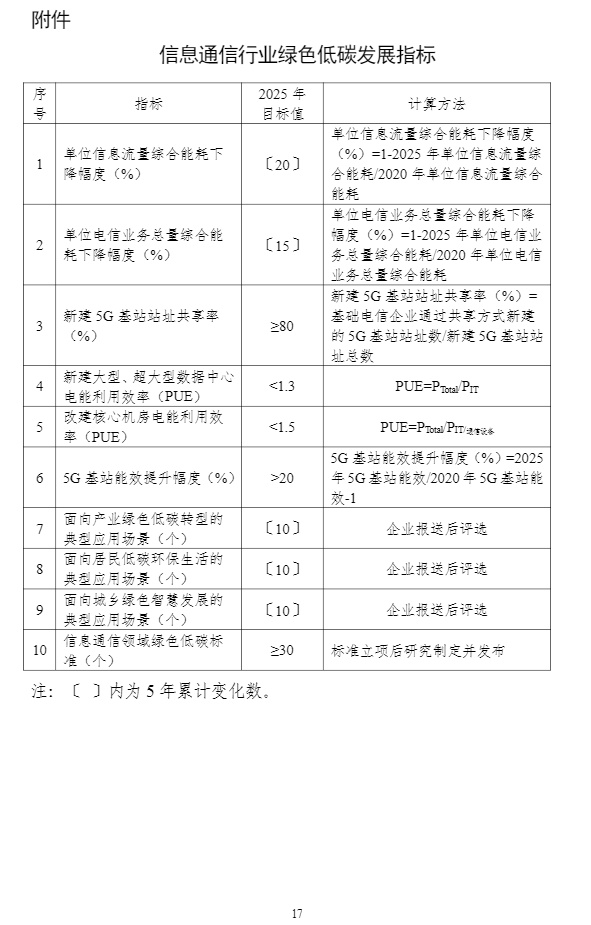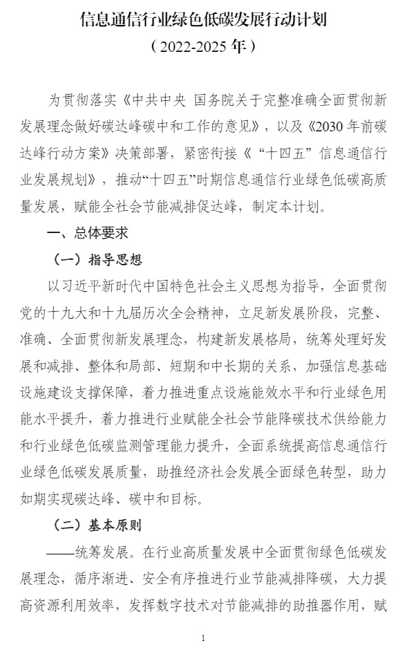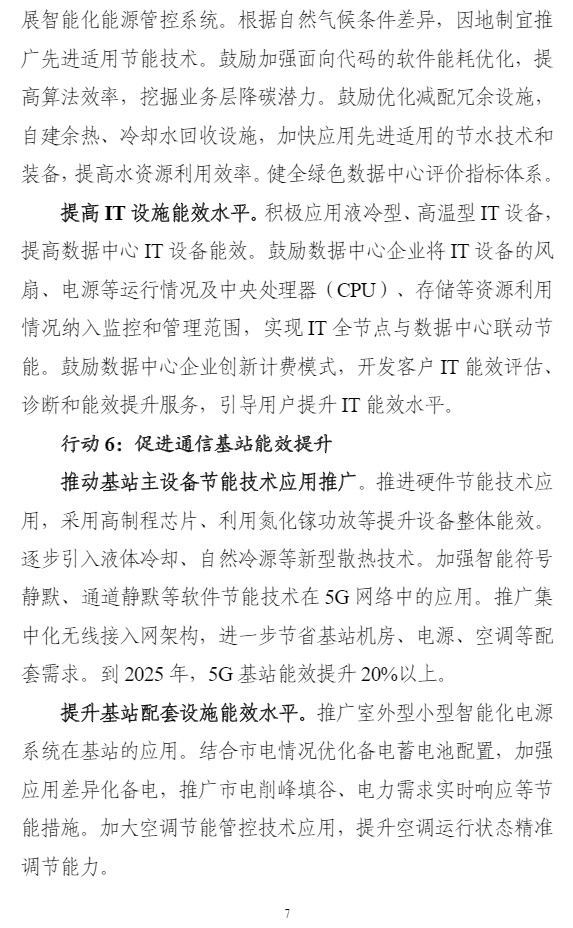 智通财经APP获悉,8月25日,工业和信息化部、国家发展改革委、财政部等7个部门联合发布《信息通信行业绿色低碳发展行动计划(2022-2025年)》,计划明确,到2025年,信息通信行业绿色低碳发展管理机制基本完善,节能减排取得重点突破,行业整体资源利用效率明显提升,助力经济社会绿色转型能力明显增强,单位信息流量综合能耗比“十三五”期末下降20%,单位电信业务总量综合能耗比“十三五”期末下降15%,遴选推广30个信息通信行业赋能全社会降碳的典型应用场景。计划提出,加大绿色能源推广使用。鼓励企业在自有场所建设绿色能源设施,与绿色能源方案提供方合作就近消纳。有序推广锂电池使用,探索氢燃料电池等应用,推进新型储能技术与供配电技术的融合应用。支持智能光伏在信息通信领域示范应用。试点打造一批使用绿色能源的案例。
