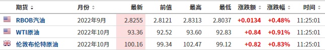 截至发稿,美国WTI 10月原油期货涨0.91%,报93.36美元/桶;布伦特10月原油期货涨0.83%,报100.16美元/桶。这两种原油期货前一交易日分别收跌2.50%、1.86%。