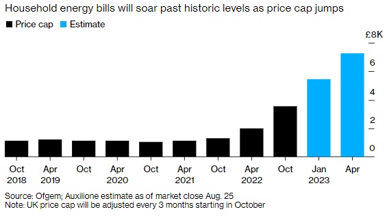 智通财经APP获悉,与一年前相比,英国家庭今年冬天的取暖费用将增加近2倍,这对数百万本已难以负担日常必需品的英国人来说是一个惊人的增长。据了解,自10月1日起,英国能源监管机构Ofgem将当地能源价格上限提高到创纪录的3549英镑(4189美元)。此外,由于英国与其他国家争夺有限的天然气供应,预计1月份其能源价格上限还会更高。