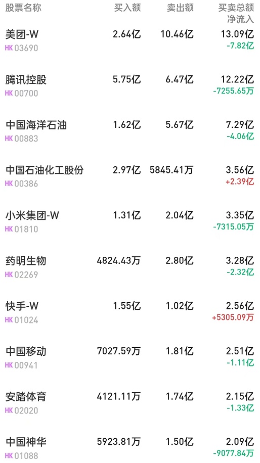 此外,腾讯(00700)获净买入1.37亿港元。而中国移动(00941)、中国神华(01088)、天立国际控股(01773)分别遭净卖出1.1亿、9077万、4483万港元。