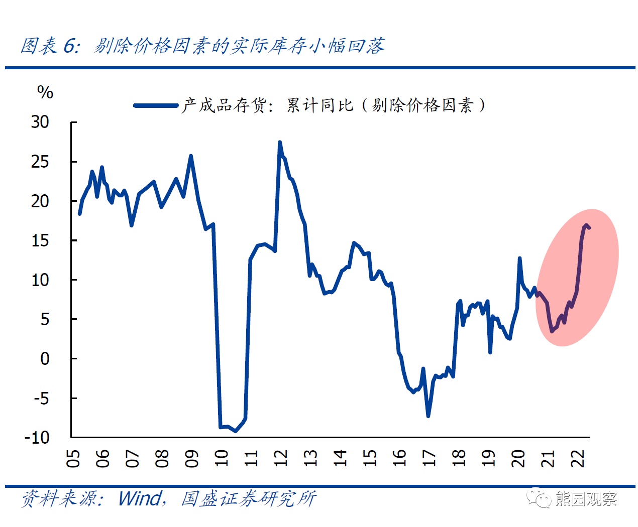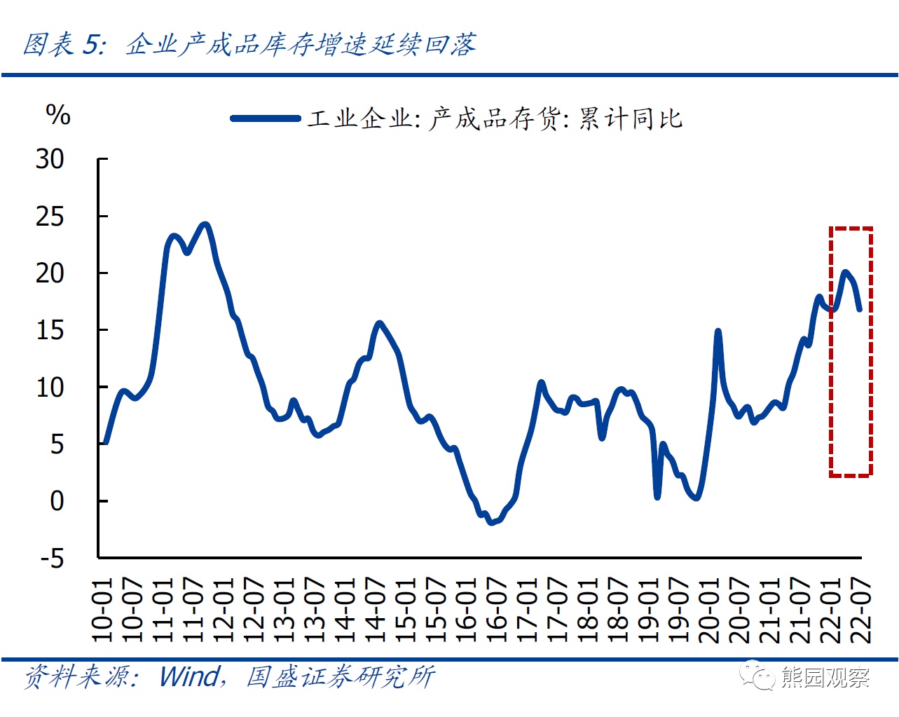 >库存端看:工业企业累库速度继续放缓。1-7月规上工业企业产成品库存同比续降2.1个百分点至16.8%,降幅较前值的0.8个百分点明显加快,三年复合增速小降0.2个百分点至12.2%;剔除价格的实际库存增速下降0.4个百分点至16.6%,结束此前连续5个月的实际库存增速上行趋势。往后看,维持此前判断,考虑M1同比已于2021年1月见顶回落(领先库存增速1年左右),疫情好转、物流恢复,PPI下行,稳增长政策继续发力等因素,后续库存增速可能延续回落。