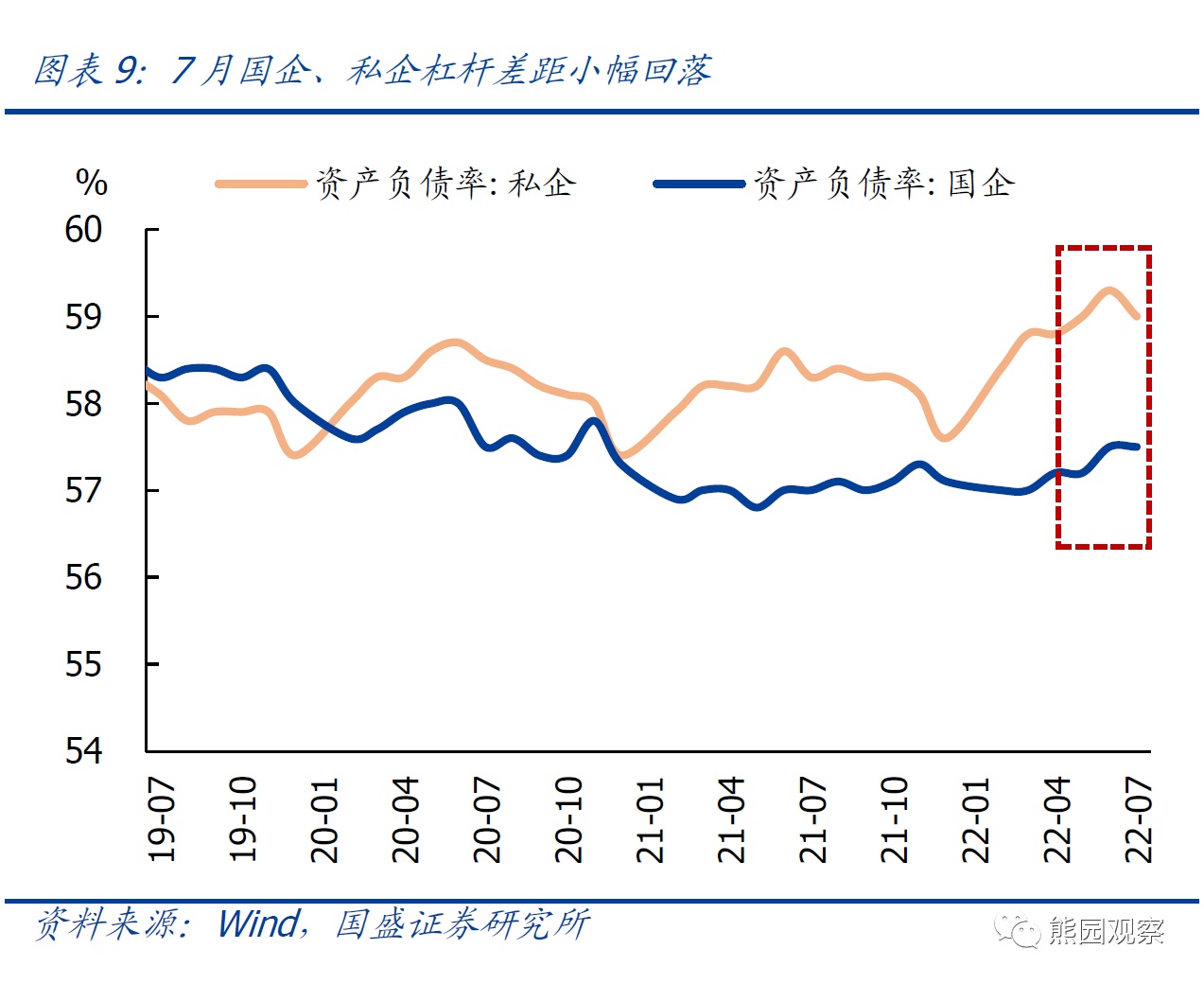 >杠杆率看:7月企业杠杆小降,国企、私企差距收窄。