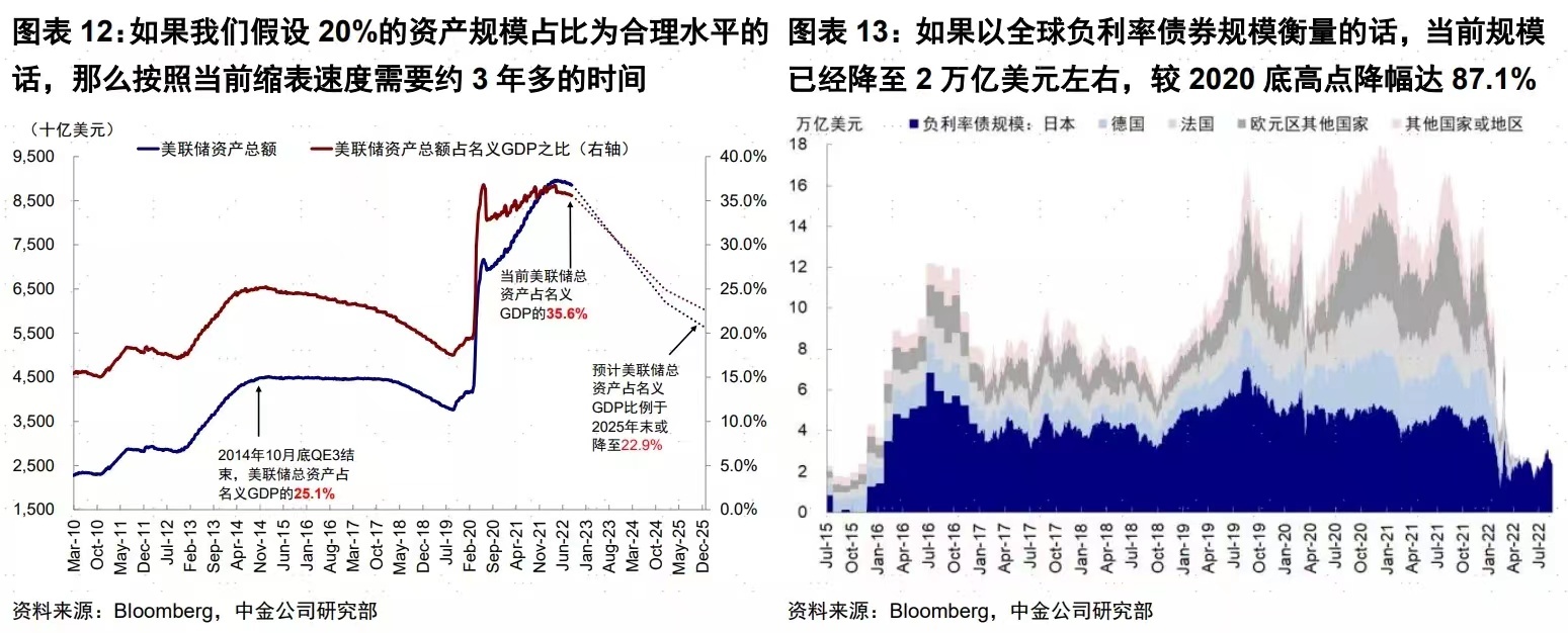初期实际缩减规模小、且影响幅度明显小于加初期缩减规模很有限:到目前累计缩减规模仅为619亿美元,不仅慢于预期,相比整体超过8.3万亿的持有证券规模也非常微小。初期影响小于更激进的加息,年内缩表规模相当于不到50bp的加息。