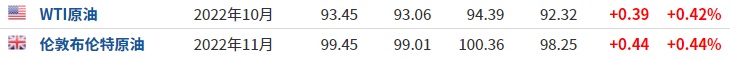 3. 截至发稿,WTI原油涨0.42%,报93.45美元/桶;布伦特原油涨0.44%,报99.45美元/桶。