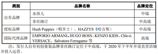 公司采取多品牌运营策略,包括自有品牌、授权经营品牌、国际零售代理品牌三类,分别对应中端、中高端和高端童装市场,涵盖了成熟品牌、发展品牌、初创品牌三个梯度。报告期内,公司运营的童装品牌及其定位情况如下: