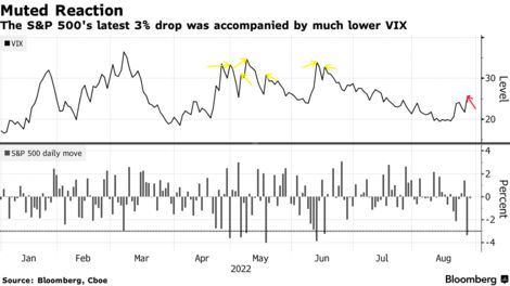 智通财经APP获悉,最近美股市值蒸发3万亿美元,标普500指数周五下跌超过3%,但VIX恐慌指数停留在25附近,低于今年其他六次股市抛售时的数值。这表明投资者几乎没有表现出恐慌,股市紧张局势正在受到抑制。
