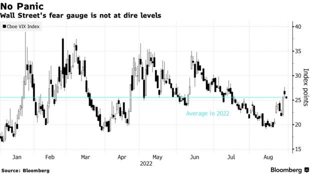 虽然投资者担心经济增长放缓对股市的影响,但仓位数据显示,他们尚未感到恐慌。尽管标普500指数自上周五鲍威尔讲话以来已大幅下挫,但被称为华尔街恐惧指标的芝加哥期权交易所波动率指数(VIX指数)停留在25附近,低于今年其他六次股市抛售时的数值,这表明投资者几乎没有表现出恐慌。此外,美国股指期货在周二的反弹也表明,投资者认为股市对美联储鹰派言论的反应有些过头。