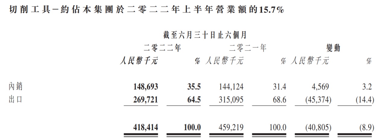 切削工具方面,出口由于海外家居DIY需求较去年的高峰期有所回落,因此出口收入下滑14.4%;内销虽然受疫情影响,但公司专注于高端产品交付的策略取得明显成效,在提高平均售价后,国内收入增长3.2%。