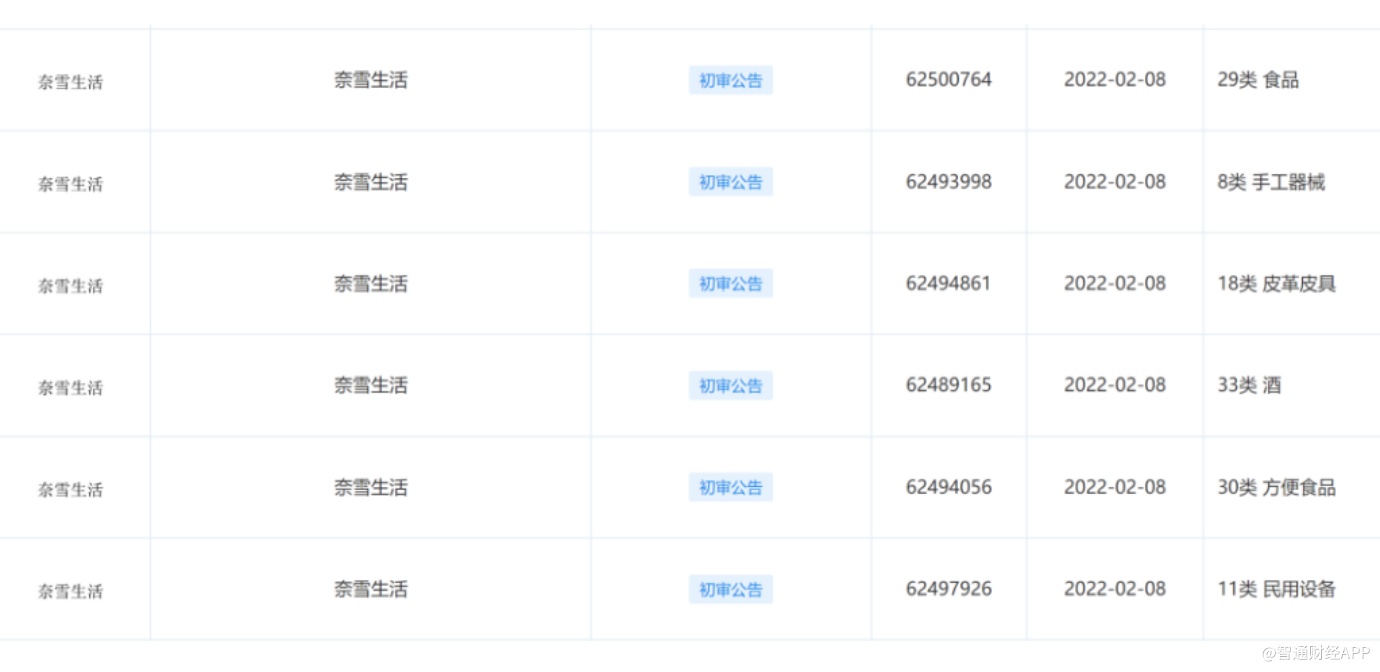 值得注意的是,早在今年1月,奈雪就申请了“奈雪生活”21个商标,国际分类涉及广告销售、餐饮住宿、服装鞋帽、酒、食品等,目前这些商标已处于初步审定状态。从商标种类来看,”奈雪生活”未来将涉足的远不止茶饮餐饮,而是要将触角延伸到Z世代生活的方方面面。