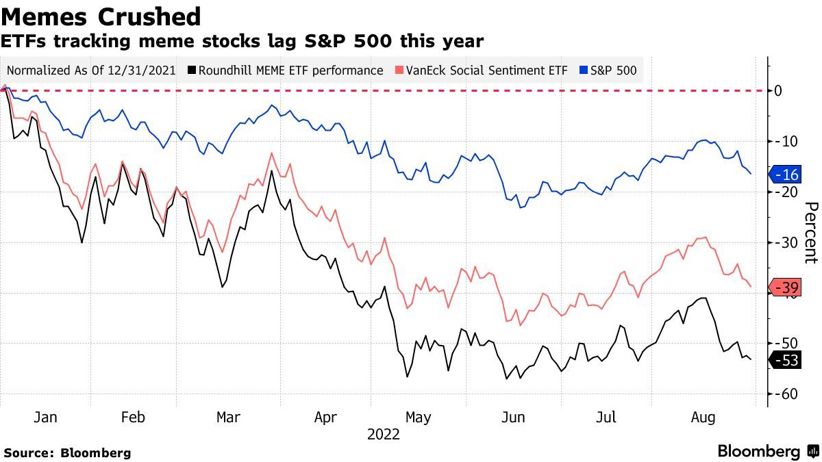 追踪众多meme股的ETF今年大幅跑输标普500指数