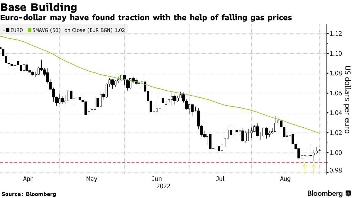 在天然气价格下跌的助力之下,欧元可能已经找到了上行的动力