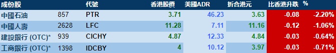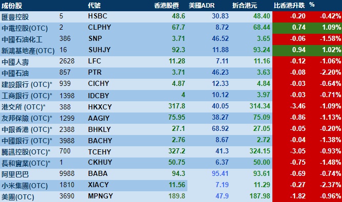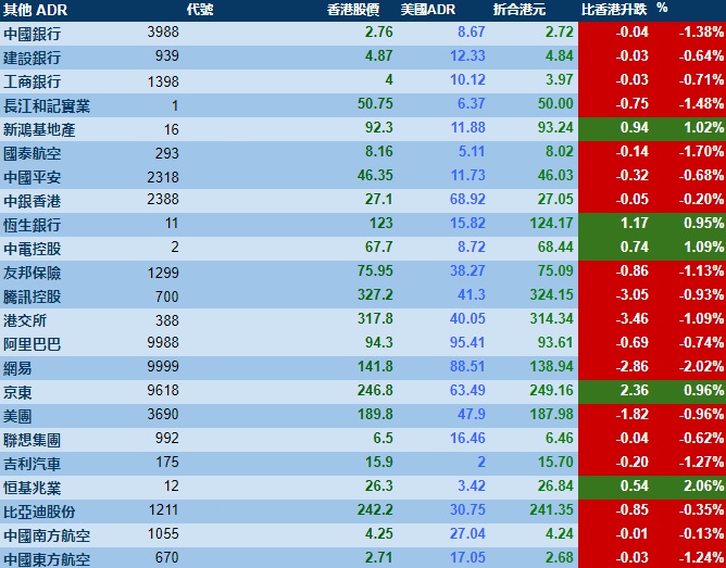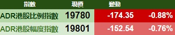 智通财经APP获悉,周三美股三大指数集体收跌,港股ADR指数下跌,按比例计算,收报19780点,较香港收市跌174.35点或0.88%。