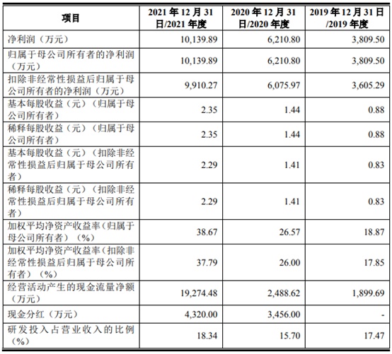 财务方面,于2019年度、2020年度及2021年度,钜泉科技营业收入分别约为3.0亿元、3.79亿元、4.99亿元。公司净利润分别为3809.5万元、6210.8万元、1.01亿人民币,归母净利润与净利润数值相同。