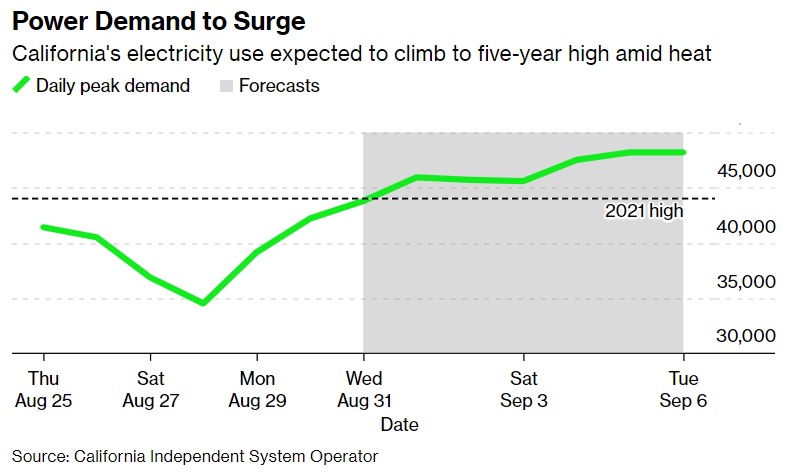 电力需求激增——高温天气下,加州用电量预计将攀升至五年来的最高水平