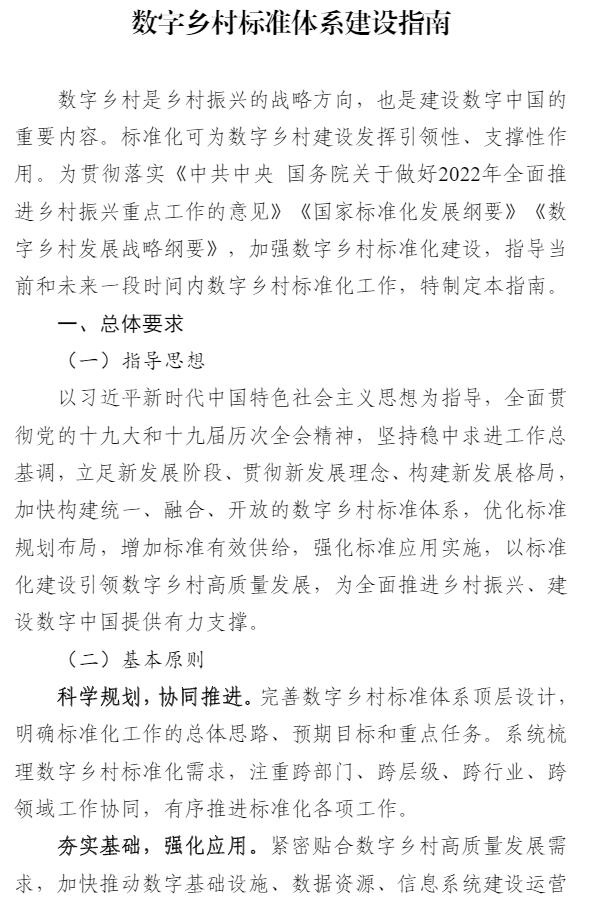 为深入贯彻落实习近平总书记关于乡村振兴的重要指示批示精神,认真落实《中共中央 国务院关于做好2022年全面推进乡村振兴重点工作的意见》《国家标准化发展纲要》《数字乡村发展战略纲要》部署要求,加快推动数字乡村标准化建设,中央网信办、农业农村部、工业和信息化部、市场监管总局会同有关部门制定了《数字乡村标准体系建设指南》。现印发给你们,请结合实际贯彻执行。