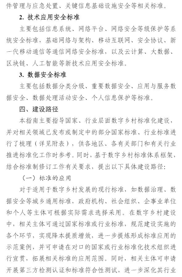 中央网信办等四部门关于印发《数字乡村标准体系建设指南》的通知
