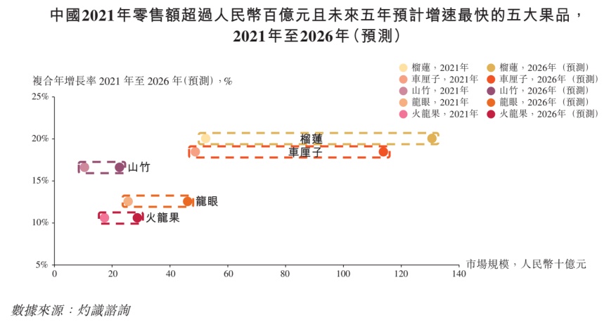 而从市场空间来看,这类果品同时为市场容量大,且在未来五年需求增速预期增长最快的水果品类。