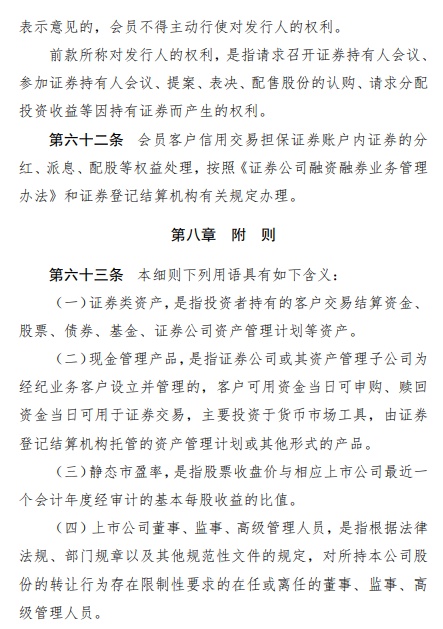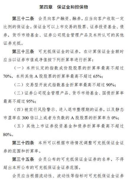 智通财经APP获悉,9月2日,北交所就《北京证券交易所融资融券交易细则》公开征求意见,投资者融资买入的保证金比例不得低于100%,融券卖出的保证金比例不得低于50%。上市公司股票、证券投资基金、债券、货币市场基金、证券公司现金管理产品及本所认可的其他证券可充抵保证金。本所认定的指数成份股股票的折算率最高不超过70%,本所其他A股股票的折算率不得高于65%;交易型开放式指数基金折算率最高不超过90%;证券公司现金管理产品、货币市场基金、国债等证券的折算率不高于95%;被实行风险警示、进入终止上市程序的证券,以及静态市盈率在300倍以上或者为负数的股票的折算率为0%;其他上市证券投资基金和债券折算率最高不超过80%。会员公布的可充抵保证金证券及其折算率,可以小于但不得超出本所规定的范围。