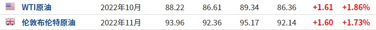 3. 截至发稿,WTI原油涨1.86%,报88.22美元/桶;布伦特原油涨1.73%,报93.96美元/桶。