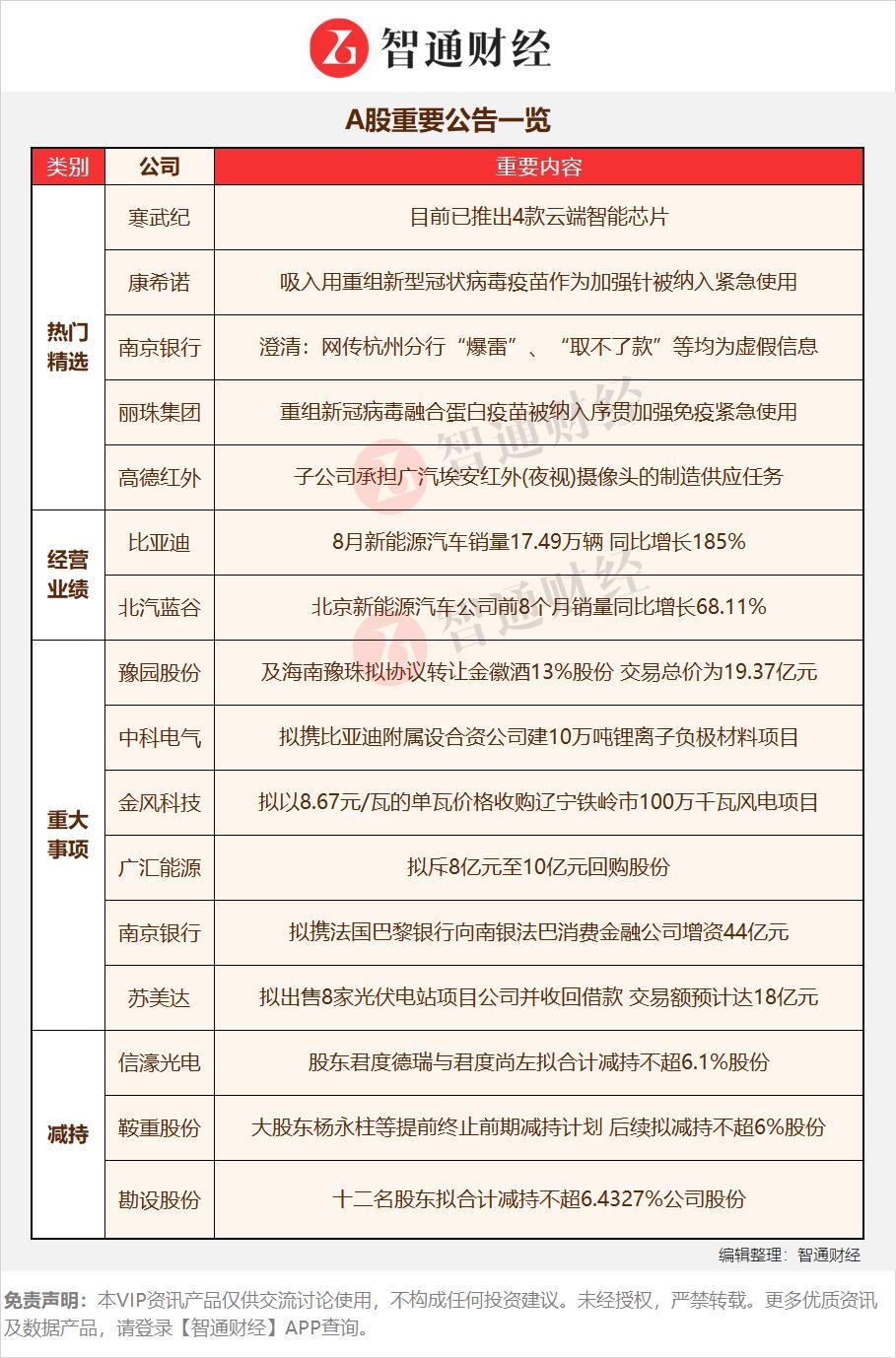 【A股重要公告一览】