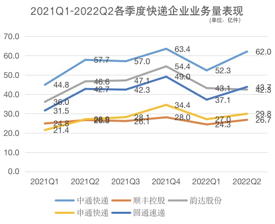 首先就业务量来看,尽管疫情反复以及经济的不确定性在一定程度上对企业经营产生了扰动,但中通快递仍逆势奔跑,单季度业务量达到了62亿件。