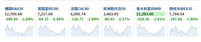 来自欧洲的钢铁生产商蒂森克虏伯、汽车零部件制造商法雷奥、化工巨头巴斯夫、水泥生产商圣戈班集团和天然气公用事业巨头Uniper SE周一在欧洲股市中表现最差。德国DAX指数由上述行业中重量级企业所组成,是该地区主要基准指数中表现最差的指数,截至发稿跌2.68%。