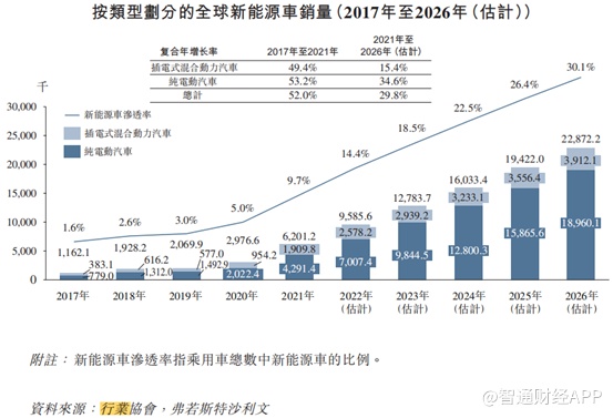 据Frost&Sullivan发布的数据显示,全球新能源汽车市场将继续保持高速增长的态势。2021年至2026年,全球新能源乘用车销量预计将以29.8%的复合年增长率增长,预计2026年全球新能源乘用车渗透率将达到30.1%。