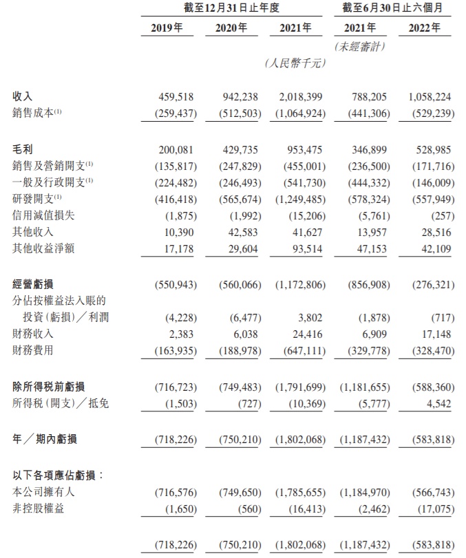 于2019年、2020年及2021年,公司分别产生亏损净额人民币7.182亿元、7.502亿元及18.021亿元。亏损净额增加主要是由于以下项目增加:(i)为开发及增强解决方案和技术栈而产生的研发开支,(ii)为提高品牌知名度和扩大用户群而产生的销售及营销开支,(iii)一般及行政开支,主要来自支付给雇员的以股份为基础的薪酬,及(iv)与授予投资者的若干非经常性优先权有关的赎回负债的利息开支,其为非经常性。截至2021年6月30日止六个月至截至2022年6月30日止六个月,亏损净额由人民币11.874亿元减少至5.838亿元,主要是由于以股份为基础的薪酬开支减少。