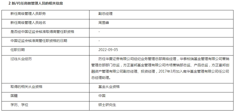 智通财经APP获悉,9月6日,南华基金发布公告称,周昱峰于9月5日起新任公司副总经理一职。
